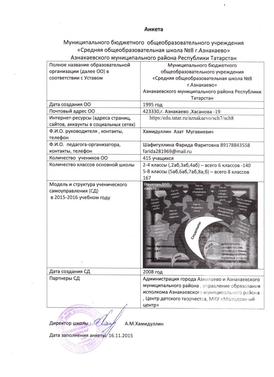 | Короткое название: | МБОУ "СОШ №8 г. Азнакаево" Азнакаевского муниципального района РТ |