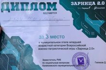 «Аҗаган 2.0» бөтенроссия хәрби-патриотик уенының муниципаль этабында кече яшьтәгеләр арасында белем бирү үзәгеннән чыгыш ясаган укучыларыбыз, җиңү яулап, мактаулы өченче урынга лаек булдылар.