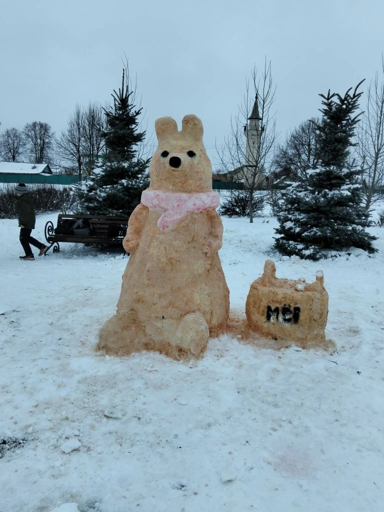 В преддверии Нового года на школьном дворе нашей школы появились красивые, яркие фигуры из снега.