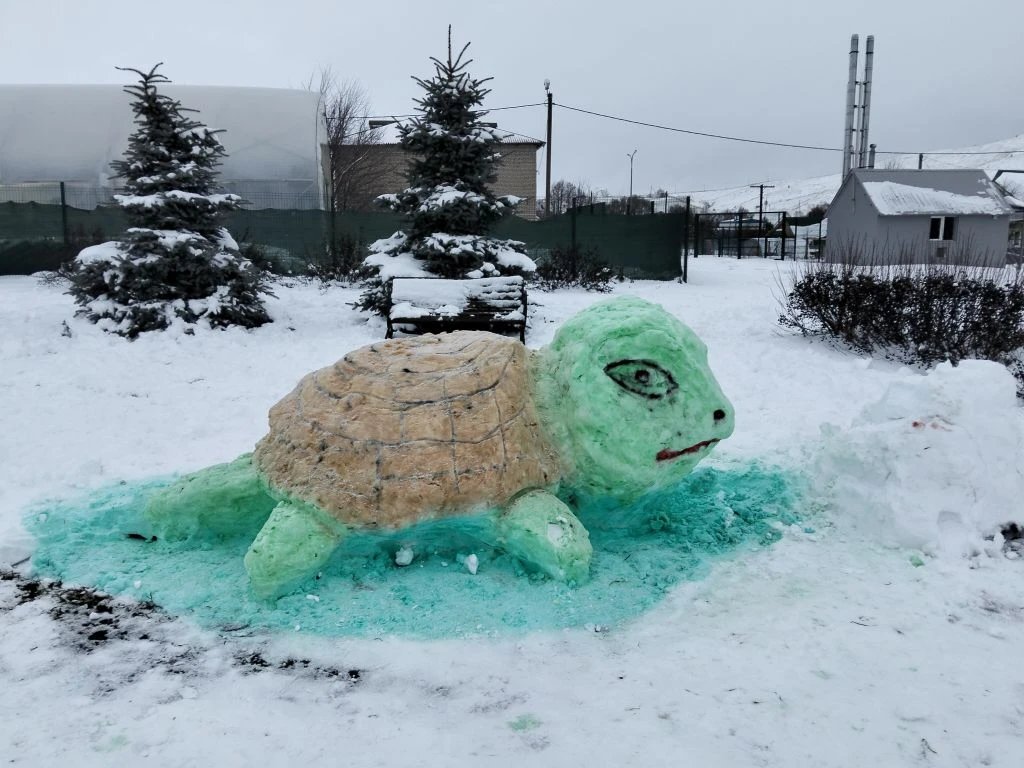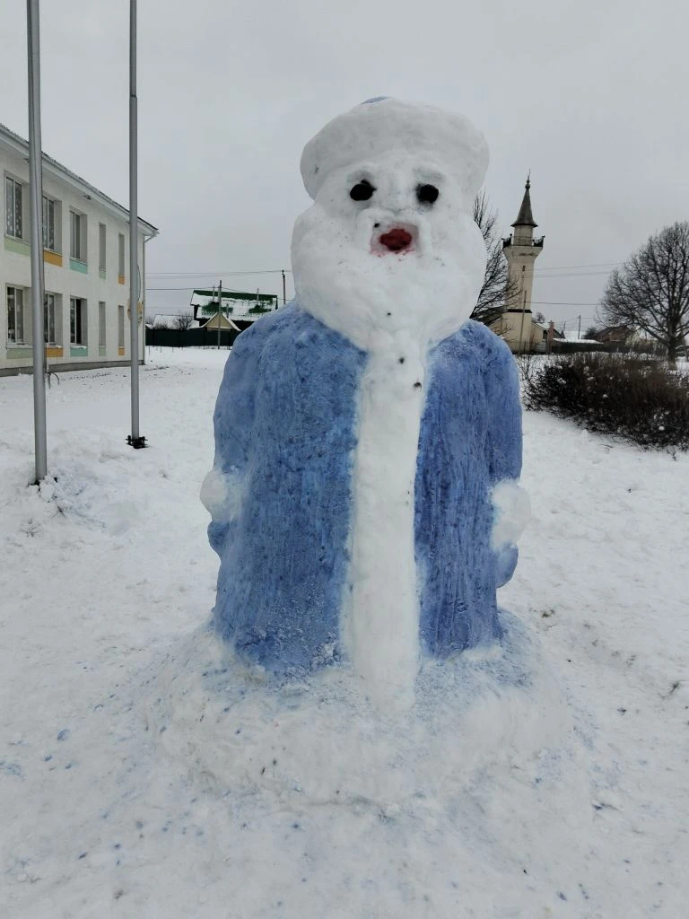 Яңа ел алдыннан безнең мәктәп ишегалдында кардан ясалган матур сыннар пәйда булды.