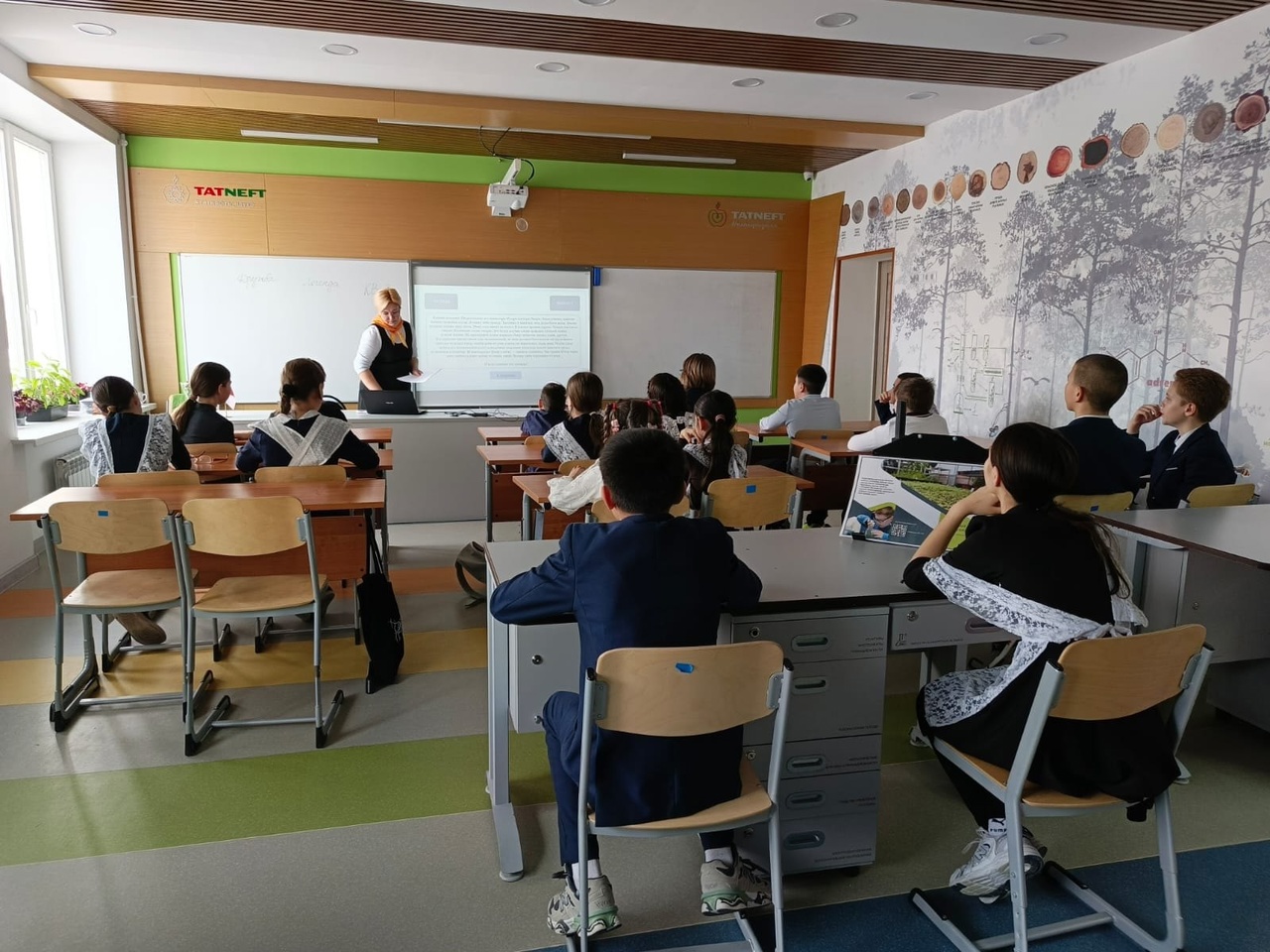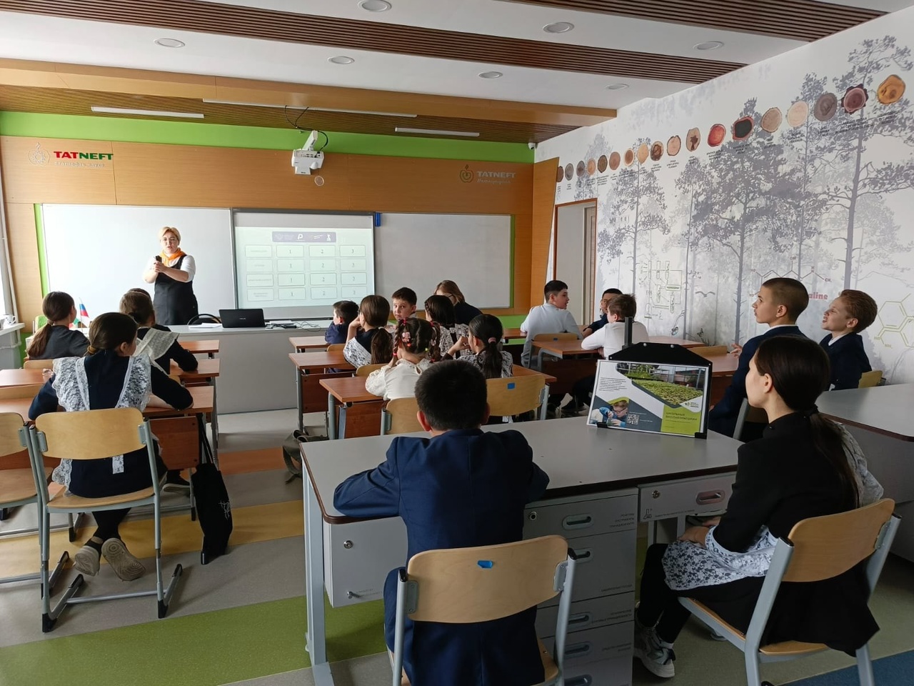 2 нче сыйныфта "Орленок-Эколог" трегы буенча табигатькә сакчыл мөнәсәбәткә багышланган мавыктыргыч дәрес узды. Әйләнә-тирә мохиттә үз-үзеңне тоту кагыйдәләре турында җанлы әңгәмәдән башладылар. Балалар чисталыкны саклау, үсемлекләр һәм хайваннар турында кайгыртуның мөһимлеге турындагы белемнәре белән актив уртаклаштылар. Аннары экология темасына "Фиксики" танып белү мультфильмын карадык. Уңайлы һәм кызыклы формада мультфильм балаларга калдыкларны эшкәртүнең һәм ресурсларны экономияләүнең мөһимлеге турында искә төшерде. Күргәннәре һәм фикер алышулары белән илһамланып, яшь экологлар карандаш һәм буяуларга тотындылар. Рәсемнәрдә табигатьнең ачык күренешләре: яшел урманнар, чиста елгалар, чәчәкле кырлар җанланып киткән. Балалар табигатьтә Матур һәм сәламәт булып калсын өчен нәрсә эшләргә кирәклеген сурәтләделәр.
