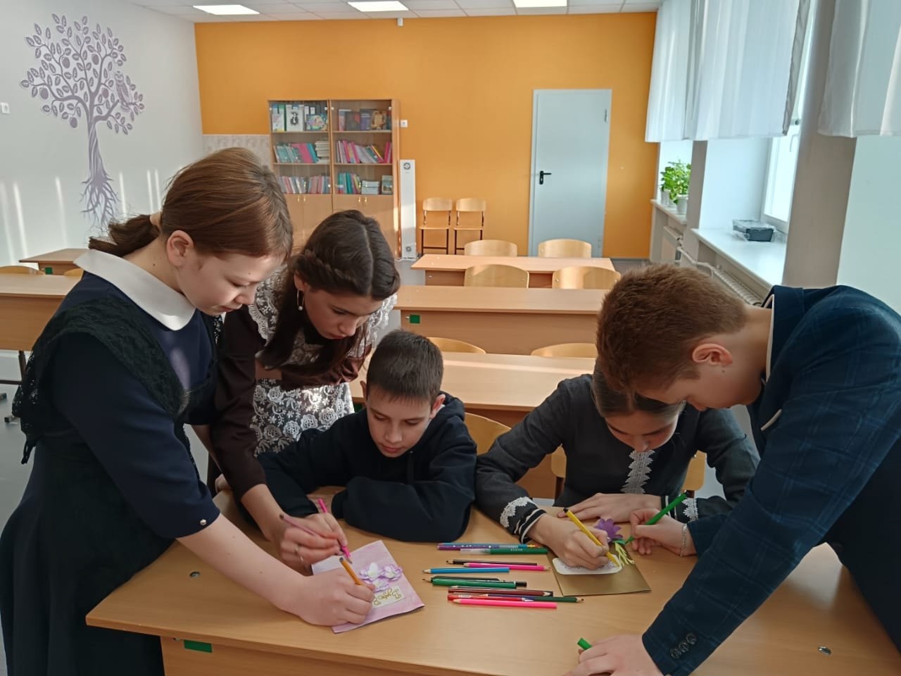 В преддверии Международного женского Дня 8 Марта ученики нашей школы поздравили учителей-ветеранов и матерей участников СВО с наступающим праздником.