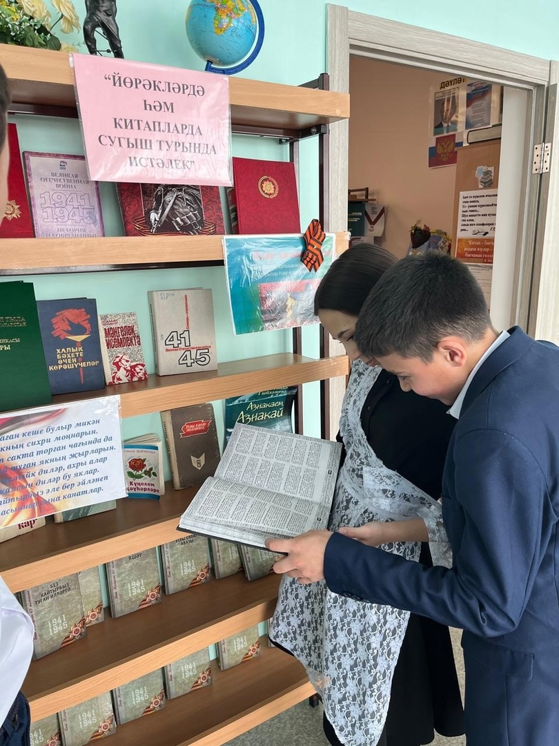 22 шаг проекта "80 шагов к Победе". Книжная выставка "В сердцах и книгах память о войне"/ "Җиңүгә 80 адым" проектының 22 адымы. "Китапларда сугыш хәтере" китап күргәзмәсе