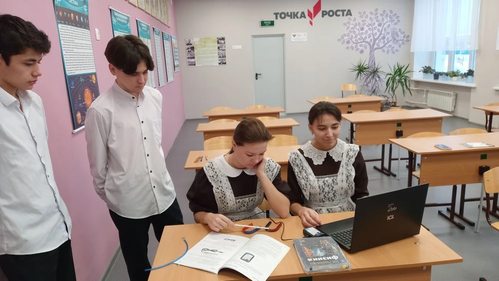 В центре "Точка Роста" на уроке физики ученики 10 класса провели исследование магнитного поля, используя датчики и тесламетр.