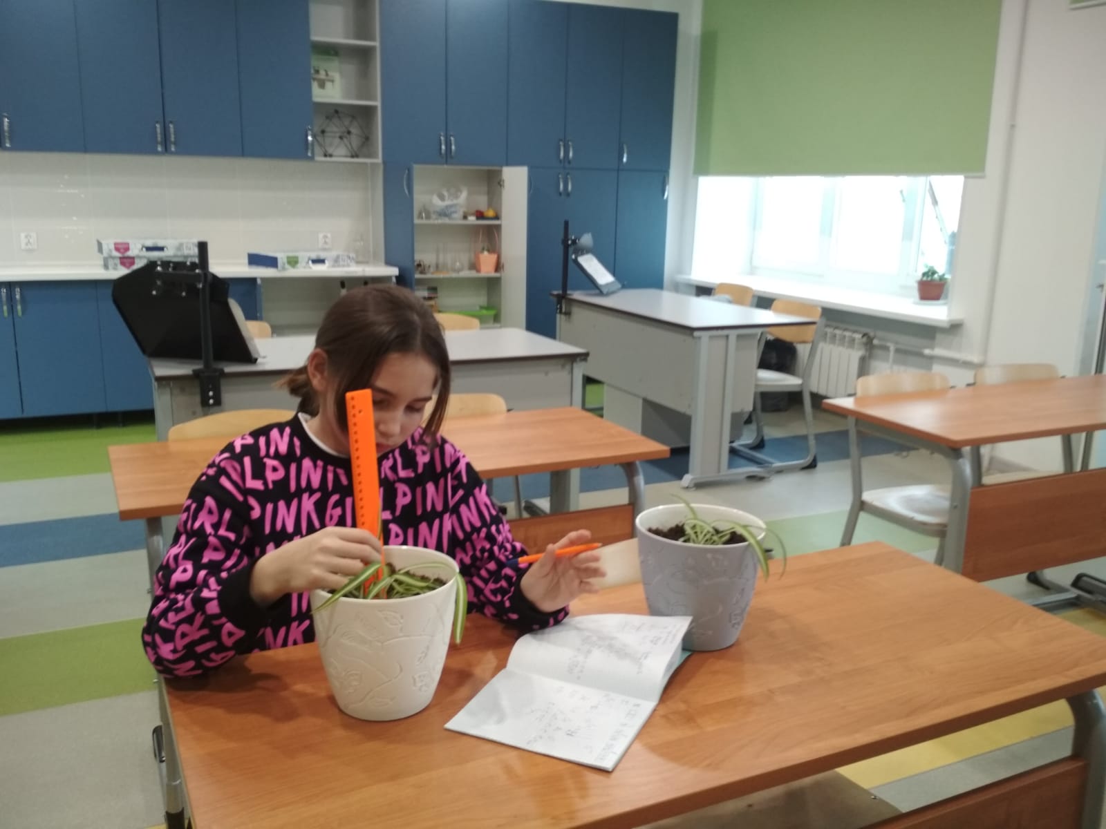 Начало работы над исследовательской работой по теме "Влияние на рост комнатного растения естественного и искусственного освящения" с использованием лаборатории "Точка роста".
