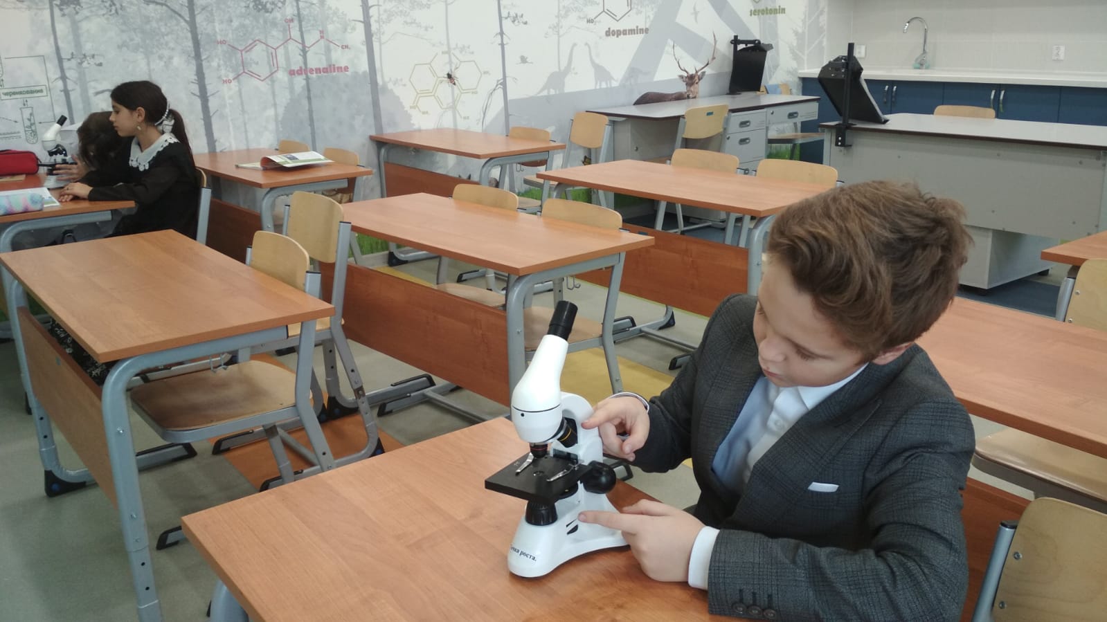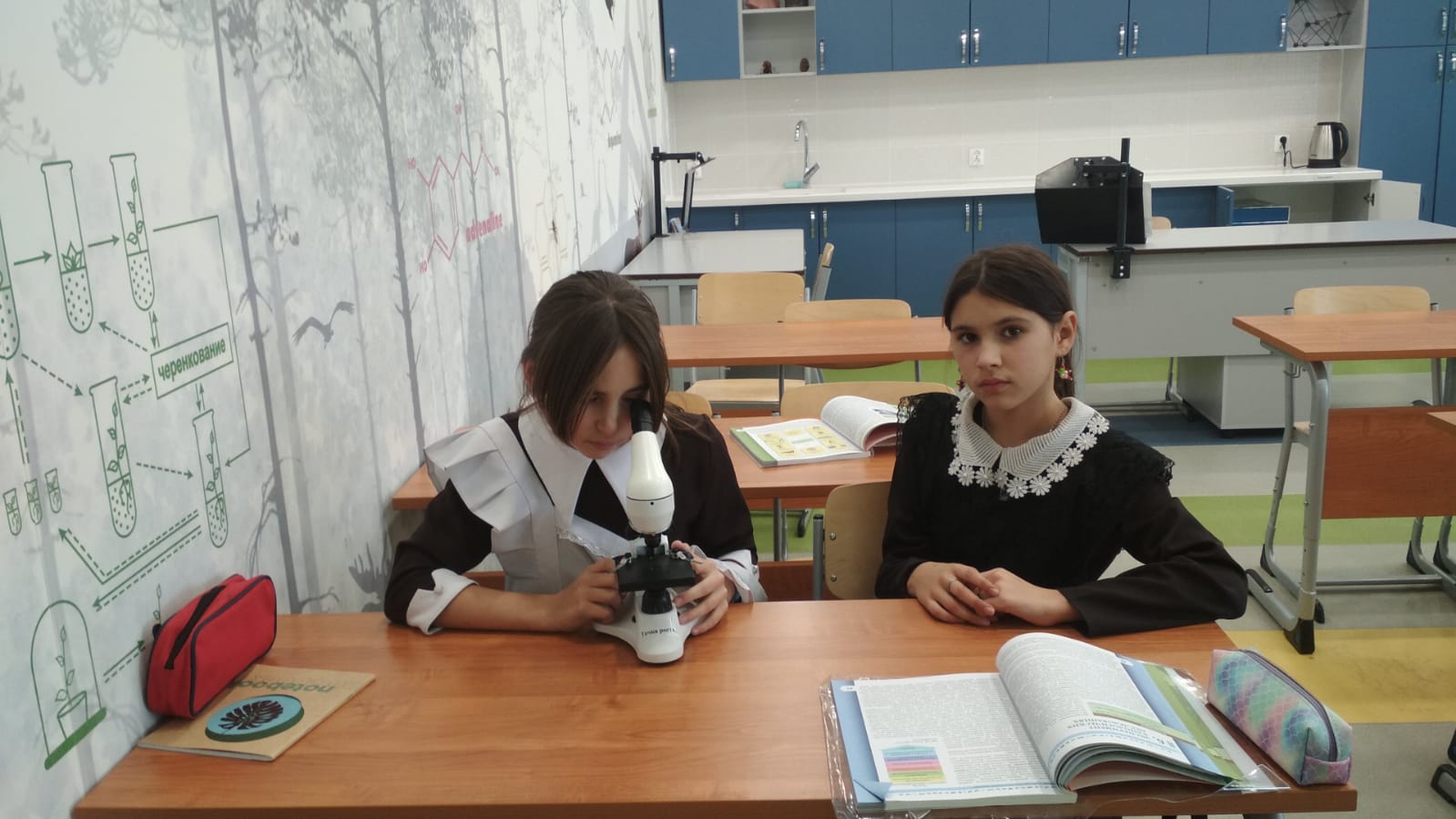 24 октябрьдә 5 нче сыйныфта «Үсеш ноктасы» табигый — фәнни һәм технологик юнәлешләр мәгариф үзәге лабораториясендә биология буенча «Зурлау приборлары җайланмасын өйрәнү» дәресе уздырыла. Укучылар лупа һәм микроскопның зураюын тасвирларга һәм чагыштырырга; микроскоп белән эшләү кагыйдәләрен өйрәнергә һәм истә калдырырга; лабораториядә эшләү кагыйдәләрен, лаборатория җиһазлары белән эш итүне өйрәнгәннәр. Балалар микроскопның өлешләрен табарга һәм аларны атарга, микроскоп астында әзер микропрепаратны карарга, нәтиҗәләр ясарга өйрәнделәр.