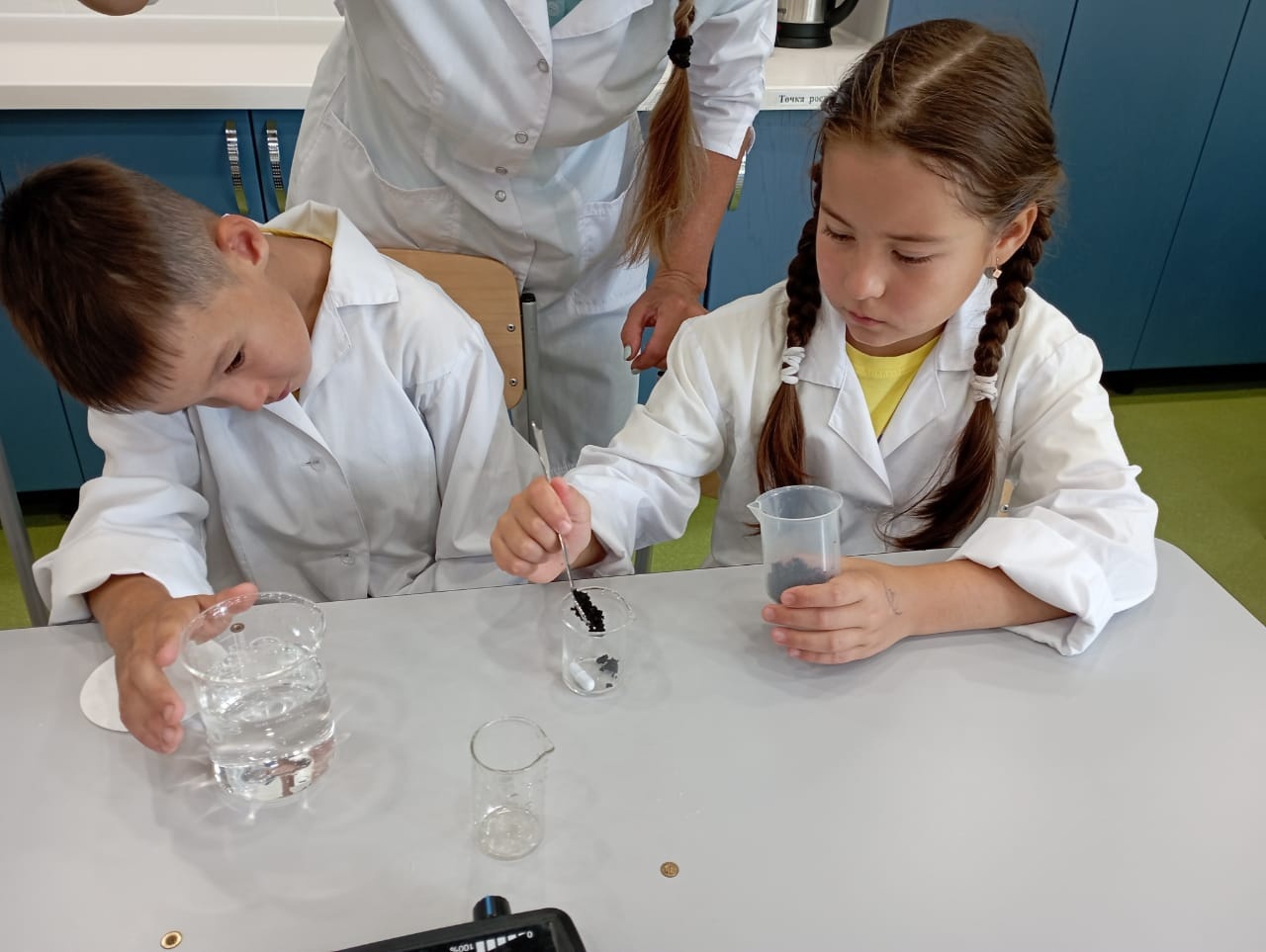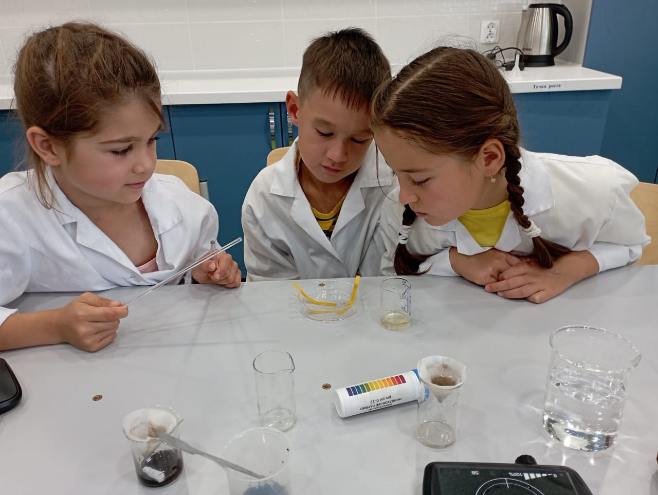 В 8 классе на базе центра «Точка роста» прошло лабораторное занятие по химии на тему «Химические свойства кислот». Дети провели химические реакции, характеризующие свойства кислот, определили факторы, влияющие на активность кислот. В конце занятия сделали выводы.