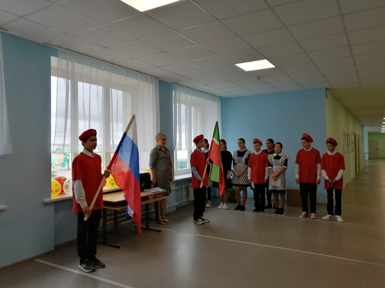 РФ Дәүләт Флагы күтәрелү тантанасына багышланган гомуми мәктәп линейкасы узды. Гомуми мәктәп линейкасын тәрбия эше буенча директор урынбасары А. Ф. Хәсәнова ачты һәм алып барды. #годПедагогаиНаставника