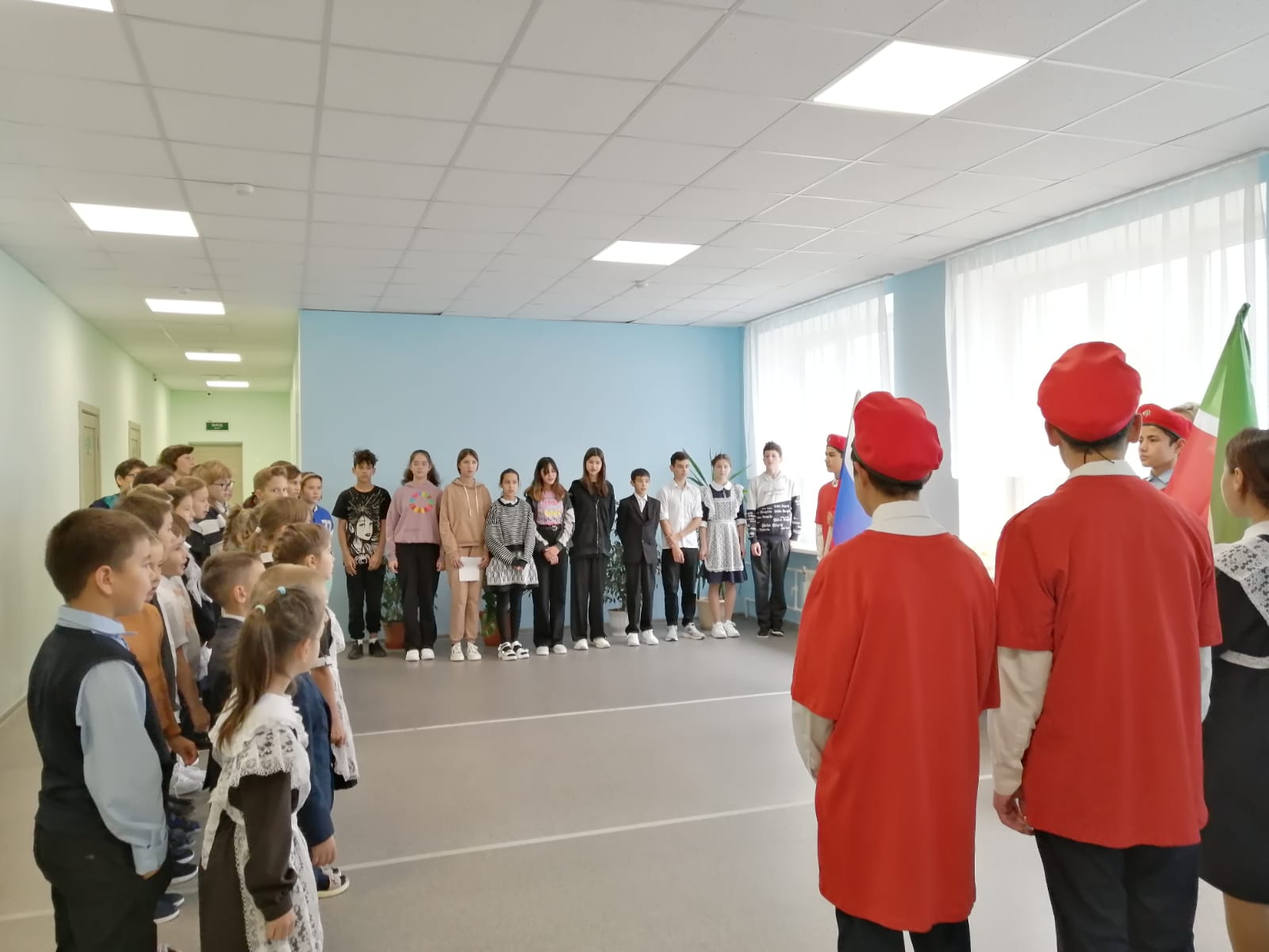 Прошла общешкольная линейка, посвященная церемонии поднятия Государственного Флага РФ. Линейку открыла и вела общешкольную линейку заместитель директора по воспитательной работе Хасанова А.Ф.