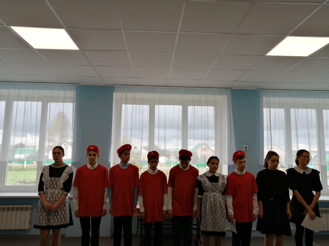 Сегодня в ряды юнармейского отряда вступило учащиеся 8-9 классов. Сулейманов Ильназ от лица своих товарищей произнес КЛЯТВУ ЮНАРМЕЙЦА. Заключительным аккордом мероприятия стало исполнение юнармейцами гимна Юнармии " Служить России"
