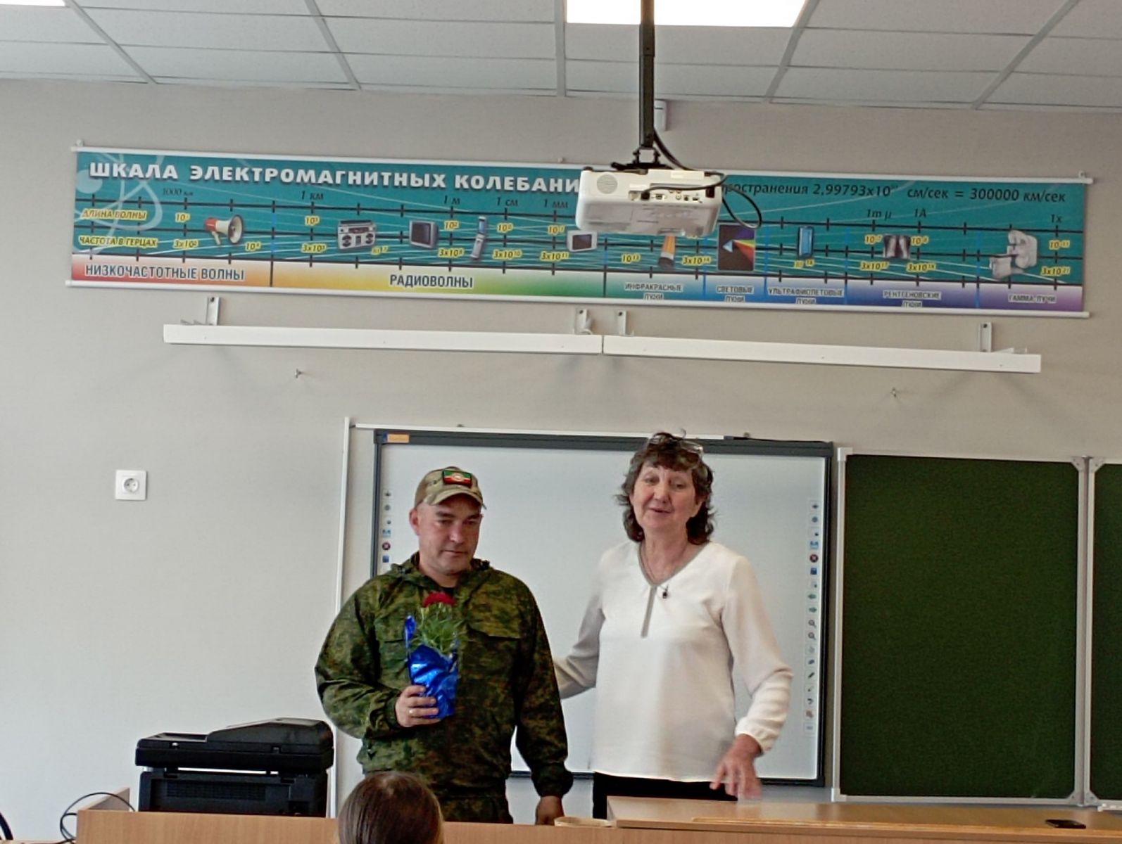 Сегодня состоялась встреча с участником СВО на Украине выпускником нашей школы Хасановым Фирдаусом. Он рассказал учащимся как он учился в школе, потом отслужил в армии, вернулся в родной дом, женился, работал… Когда началась мобилизация, он стал участником СВО на Украине. После шести месяцев службы Хасанов Фирдаус получил заслуженный отпуск и приехал навестить родную школу. Все участники были рады встречи, ведь это же наш воспитанник, наш выпускник!!! Фирдаус, для нас ты настоящий Герой! Мы желаем тебе стойкости и мужества, удачи и везения в предстоящих боях и ждем тебя домой с Победой!
