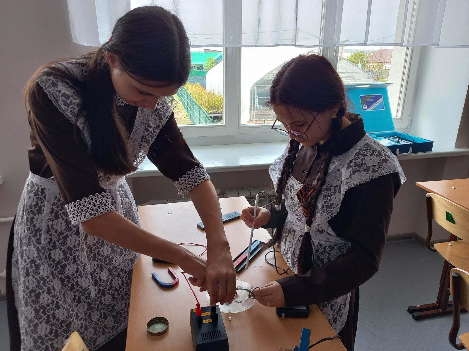 Физика дәресендә 9 нчы сыйныф укучылары «Үсеш нокталары» җиһазларын кулланып практик эш башкардылар. Балалар магнит полюсларын билгеләделәр. Озын һәм аркылы дулкыннар һәм аларның таралуын өйрәнделәр.#ГодПедагогаНаставника