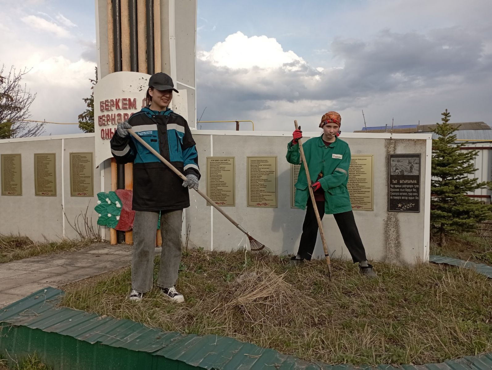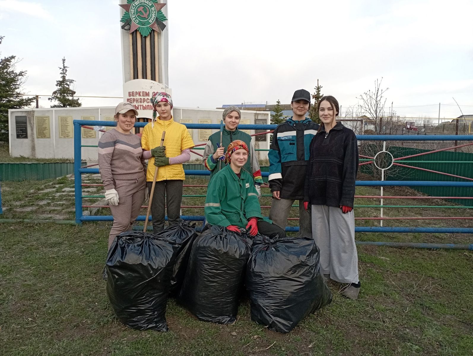 Традиционная акция «Обелиск» по уборке территории возле памятника погибшим односельчанам/ Һәлак булган авылдашларына һәйкәл янындагы территорияне җыештыру буенча « Обелиск» традицион акциясе