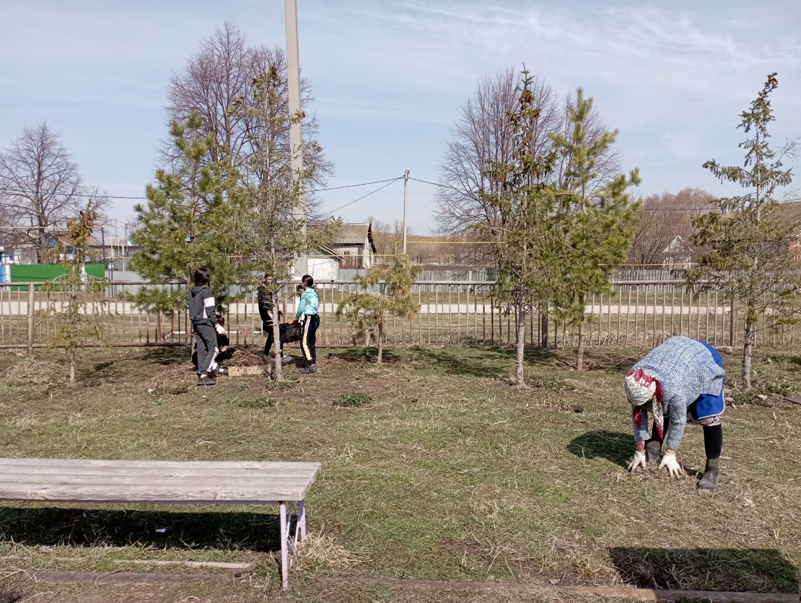 Акция "Чистый школьный двор" на территории МБОУ "СОШ с.Мальбагуш»/ Мәлбагыш авылы урта гомуми белем бирү мәктәбе территориясендә "Чиста мәктәп ишегалды" акциясе