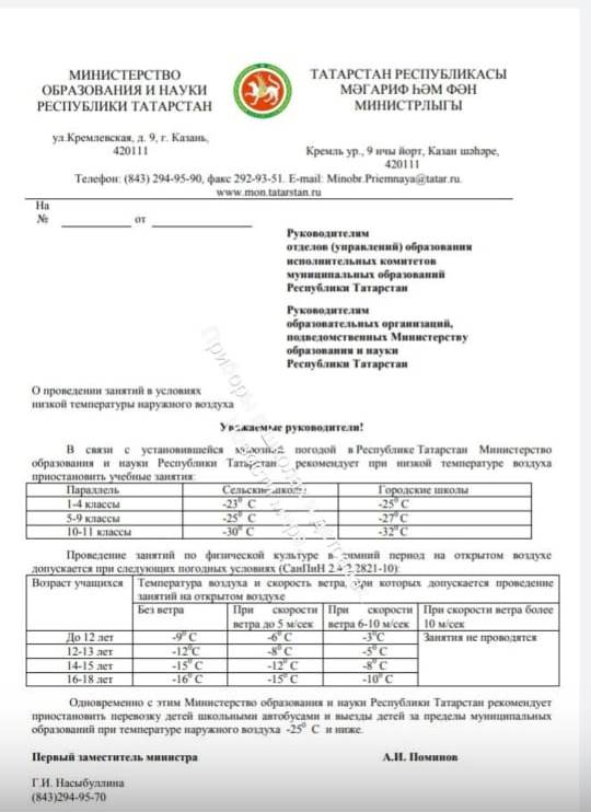 - Об организации учебного процесса при низких температурах воздуха 14.01.2021