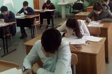 Учащиеся 9 класса выполняют тренировочное тестирование по математиике.