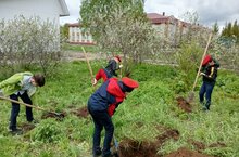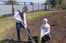 3)Юнарийцы сажают плодовые деревья на пришкольном участке