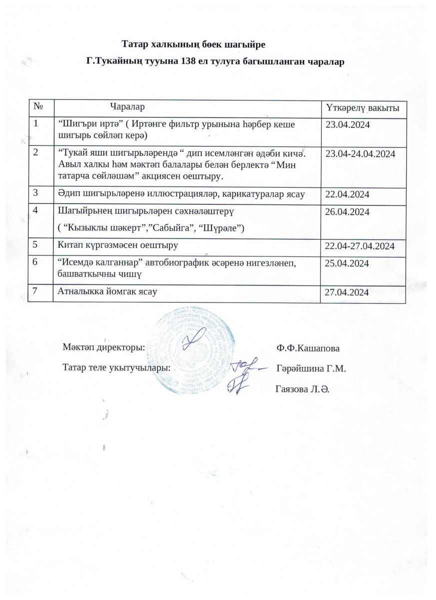 Г.Тукайның 138 еллыгына багышланган чаралар 23.04.2024