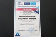 Хамзин Мухаммет принял участие во Всероссийском конкурсе научно-технического творчества учащихся "Юные техники XXI века" в г. Москве и награжден дипломом лауреата III степени. Поздравляем!!!