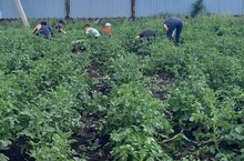 6- 8 сыйныф укучылары мәктәп бакчасында бәрәңге утыйлар