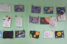 В рамках недели физики, среди учащихся 1-5 классов провели школьный конкурс рисунков "День космонавтики. Поехали!"