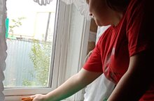 Үчәлле авылында яшәүче лаеклы ялдагы укытучы апабызга Кадырова Зәринә өен җыештырырга ярдәм итэ.