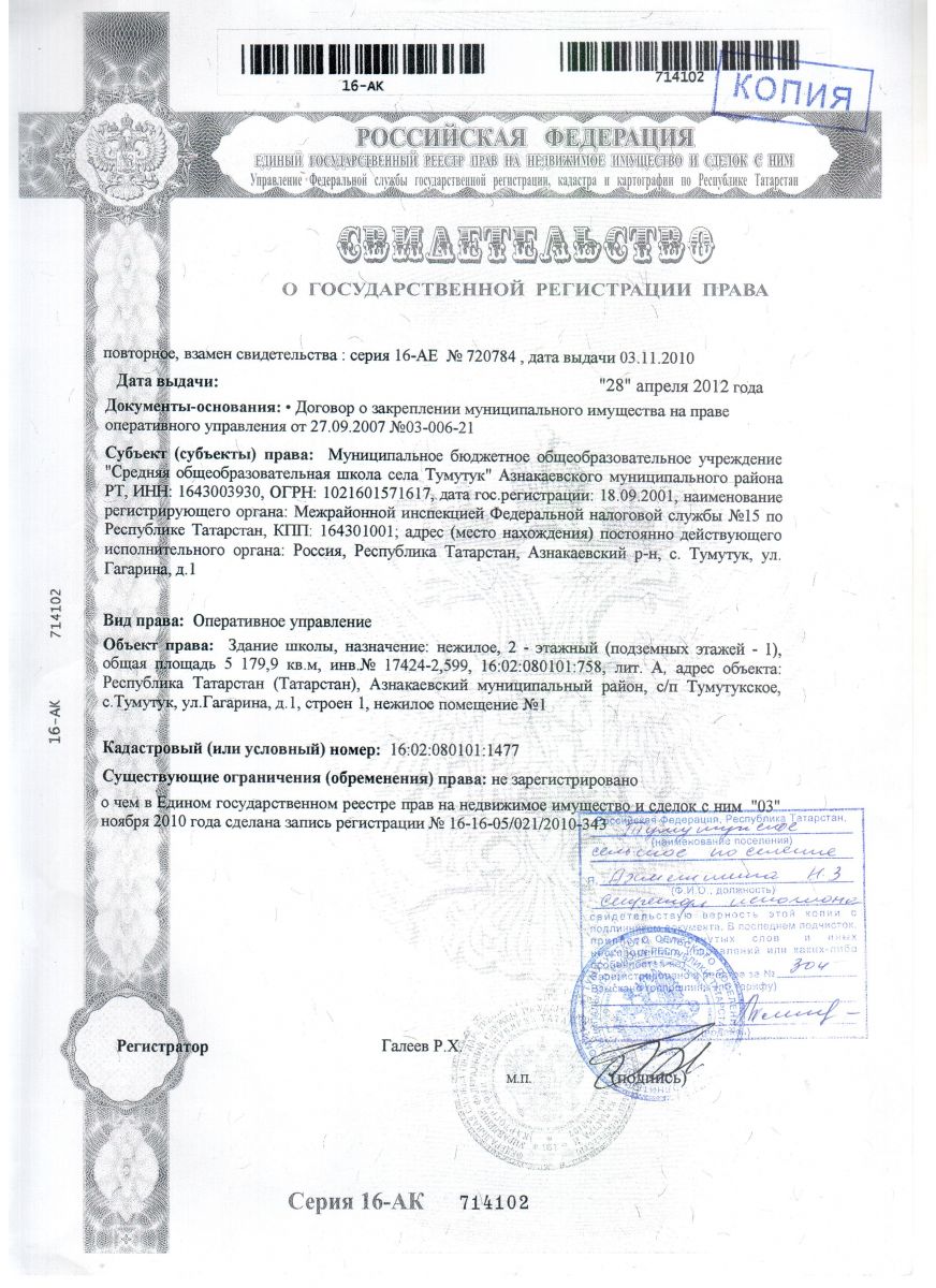 | Адрес: | 423316, с. Тумутук, ул. Гагарина, д. 1 |