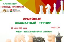 Семейный шахматный турнир. г. Азнакаево, Площадь Татарстана. 28 июля 2023 года. Ждем всех любителей шахмат.