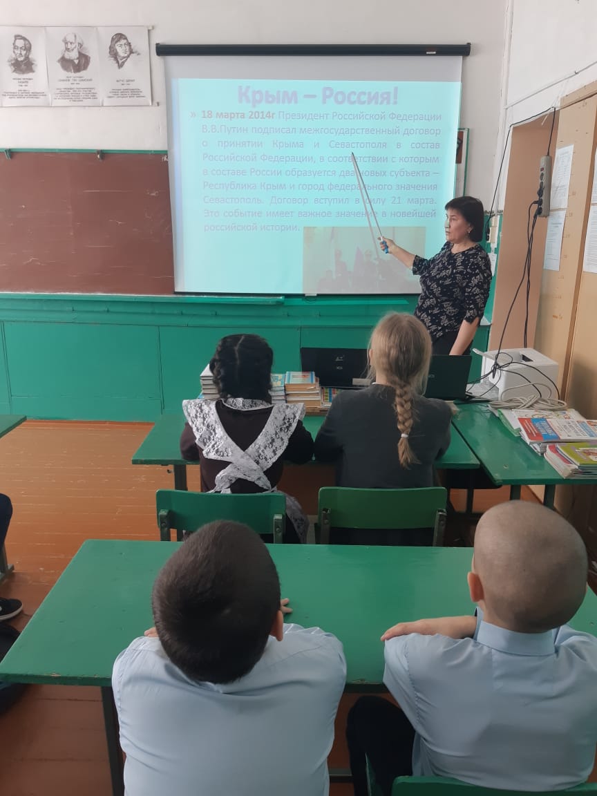 17 марта было проведено внеклассное мероприятие на тему «Мы вместе: Крым и Россия». Целью было информирование учащихся об историческом факте – воссоединении Крыма с Россией, а также его значении для судьбы страны. ФОТО ФОТО2