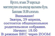 Родительское собрание/Ата-аналар җыелышы 28.04.2020