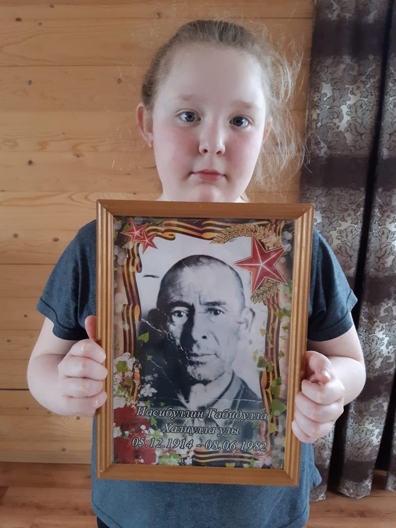 Минем әбиемнең әтисе Насибуллин Габидулла Халиулла улы Тымытык районы Сөендек авылында 1914 елның 5 декабрендә туа. Ул сугышның беренче көннәрендә үк сугышка китә. 1945 елда кайта. Сугыш ветераны була. Алынган җәрәхәтләрдән 1982 елның 8 июнендә үлә.
