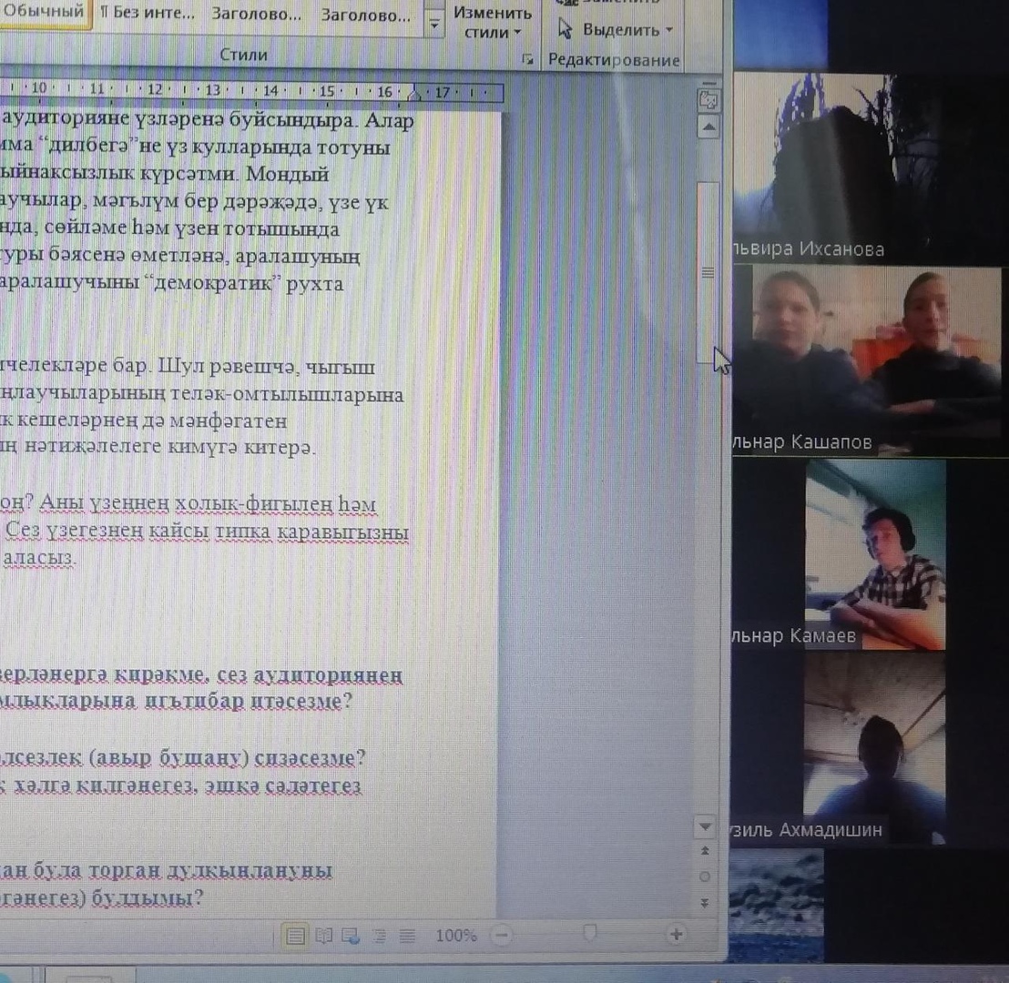 Дистанцион белем бирү процессы дәвам итә. Укучыларыбыз белән элемтәне булдыру өчен WhatsApp видео форматын уңышлы кулланабыз. Укучылар саны аз булган, 4 нче, 7 нче сыйныфларда бу алым балага белем бирүне җиңеләйтә.
