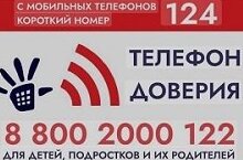 124. Короткий номер для звонков с мобильных телефонов. Единый общероссийский телефон доверия для детей, подростков и их родителей. Работает круглосуточно.