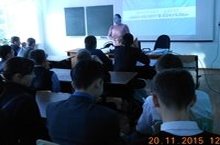 04.12.2015 в школе прошёл Урок правовой грамотности "Коррупции - НЕТ!" Перед учащимися 6-11 классов выступил помощник руководителя испольнительного комитета Азнакаевского муниципального района РТ по мобилизационной работе Сабирзянов Радик Амирзянович.