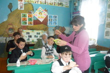 | У нас учат: | 5 учителей,3 воспитателя / 5 укытучы,3 тәрбияче |