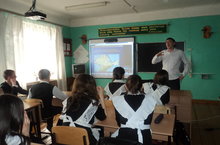 Бөек Җиңүнең 70 еллыгы уңаеннан мәктәбебезнең тарих укытучысы Гобәйдуллин Ранил Бөек Ватан сугышы геройларына багышланган темага класс сәгате үткәрде.