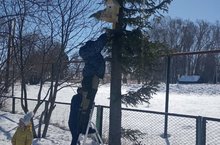 Әтиләр тырышып бик матур сыерчык оялары ясап алып килгәннәр иде.Шул ояларны территориябездәге агачларга урнаштырдык.Без кошларны каршы алырга әзер/Папы селали красивые скворечники.Эти скворечники мы разместили на деревьях на нашей территории.Мы готовы встретить птиц.