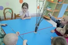Уртанчылар тцркеме баллары рщсем шцгылендщ тал песие ясадылар/Дети средней группы рисовали вербу на занятии рисования
