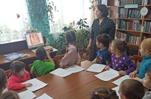 Китаханәче Рафилә апабыз,Фәнис Яруллинга 85 ел тулу уңаеннан,балаларны язучының "Зәңгәр күлдә ай коена" әкияте белән таныштырды./ В честь 85 летия со дня рождения татарского писателя Фаниса Яруллина, наша библиотекарь познакомила детей с его сказкой.