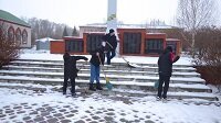 Көзге лагерь вакытында да мәктәп волонтерлары үз эшчәнлеген туктатмый. Менә бүген дә алар яуда ятып калган авылдашларыбыз истәлегенә куелган һәйкәлне чистартып куйдылар