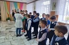 Фельдшер Наталья Сергеевна укучыларның гигиена таләпләрен үтәүләрен тикшерде.