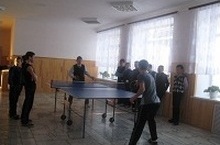 Мәктәп коридоры да ярыш залына әйләнде. Егетләр һәм ир-ат укытучылар арасында теннис ярышлары бара. Бар да чын күңелдән, илһамланып шар суга. Ә без аларның җиңү яулауларын һәм укуны да онытмауларын телибез.