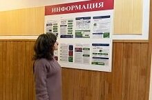 Профсоюз җитәкчесе Габидуллина Надежда Анатольевна профсоюз эшчәнлеге турындагы стендны яңартты.