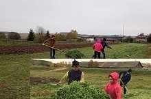 8 нче сыйныфлар Өлкәннәр декадасын башлап җибәрделәр - Халиуллина Гөлсылу апаның печәнен җыеп кайттылар.
