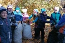 Балалар белән мәктәп янын көзге яфраклардан чистарттык.