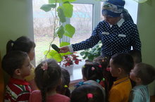 Уртанчылар төркеме тәрбиячесе Зөлфия Нургаяновна балаларга кыяр үстерү төрләрен өйрәтә. 1 нче майга беренче кыярлар өлгерде.