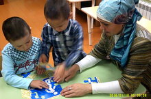 ЮХИДИ хезмәткәрләре биргән бүләкләр белән балалар куанып уйныйлар, белемнәрен ныгыталар.