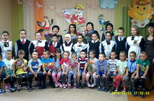 Нәниләр төркеме балалары апайларны бәйрәм белән котлыйлар. Бәйрәмнәр мөбәрәк булсын!