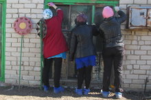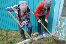 Ямьле җәйне каршылап, бакча тирәсен төзәтү, буяу эшләре дәвам итә. Кече тәрбиячеләр бу хезмәттә башлап йөрүчеләр.