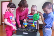 Балаларда үсемлекләрне күзәтә белү сыйфаты, тирә-юньгә кызыксынучанлык, хезмәткә хөрмәт тәрбияләү максатыннан, чәчәк түтәлләрен ямьләндерү өчен мәктәпкә әзерлек төркемендә үсентеләр үстерүгә зур игътибар бирелә. Тәрбияче апалары белән берничә төрле чәчәк чәчтеләр. Хәзер көн саен үскәннәрен күзәтеп, су сибеп, йомшартып торалар. "Бакчабыз көлеп торсын", - дип тырышалар.